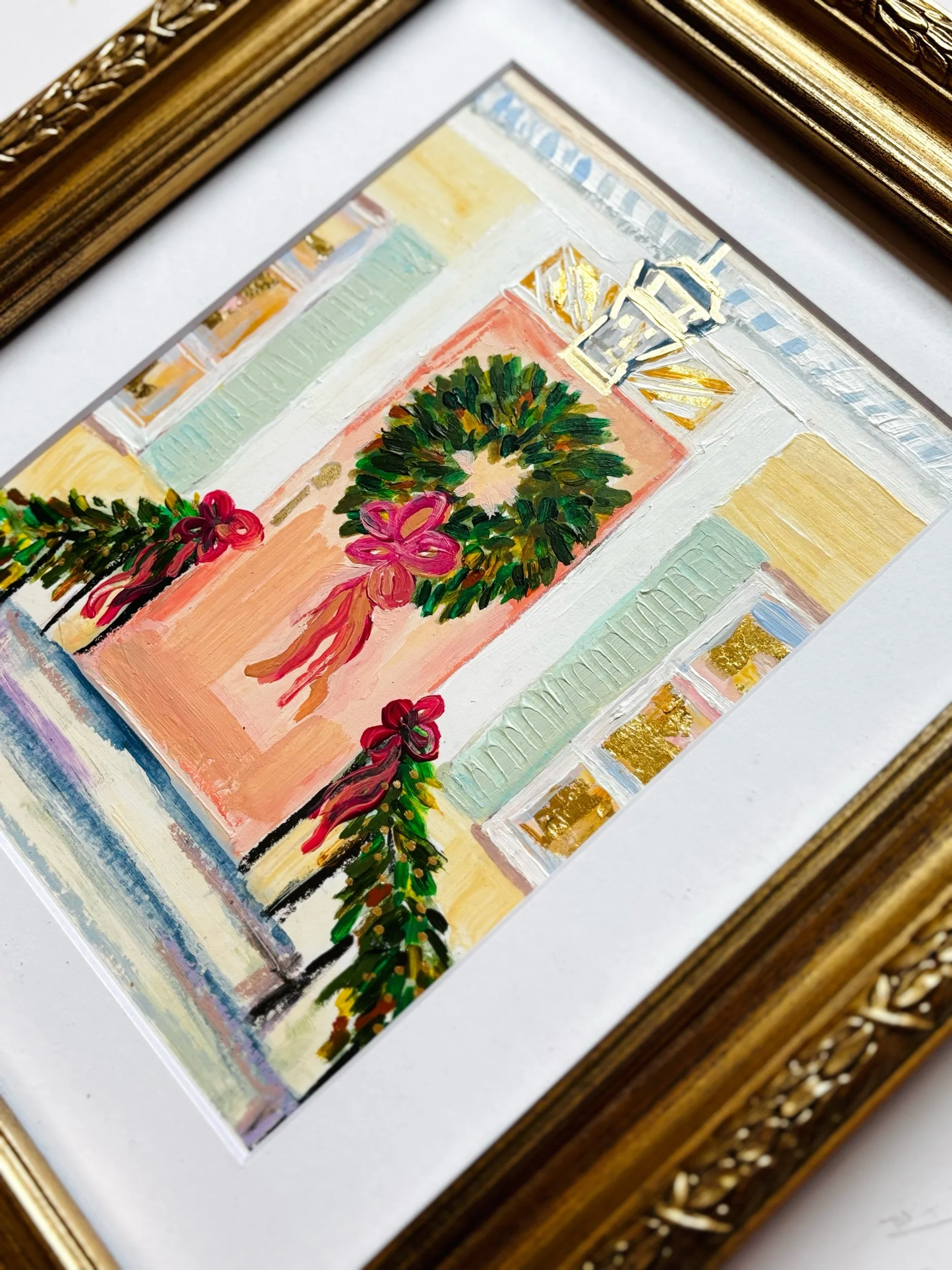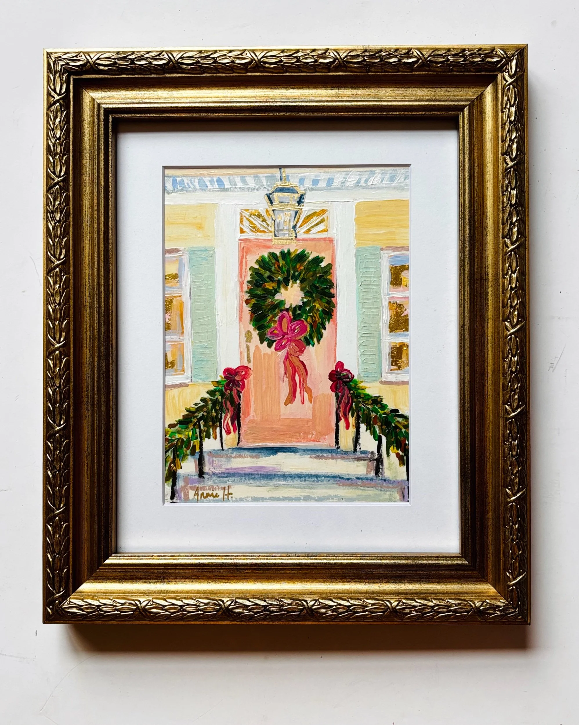 Home for the Holidays — Original Christmas Door Collection. Each piece features a 6x8 original on paper framed in an 8x10 gold frame.