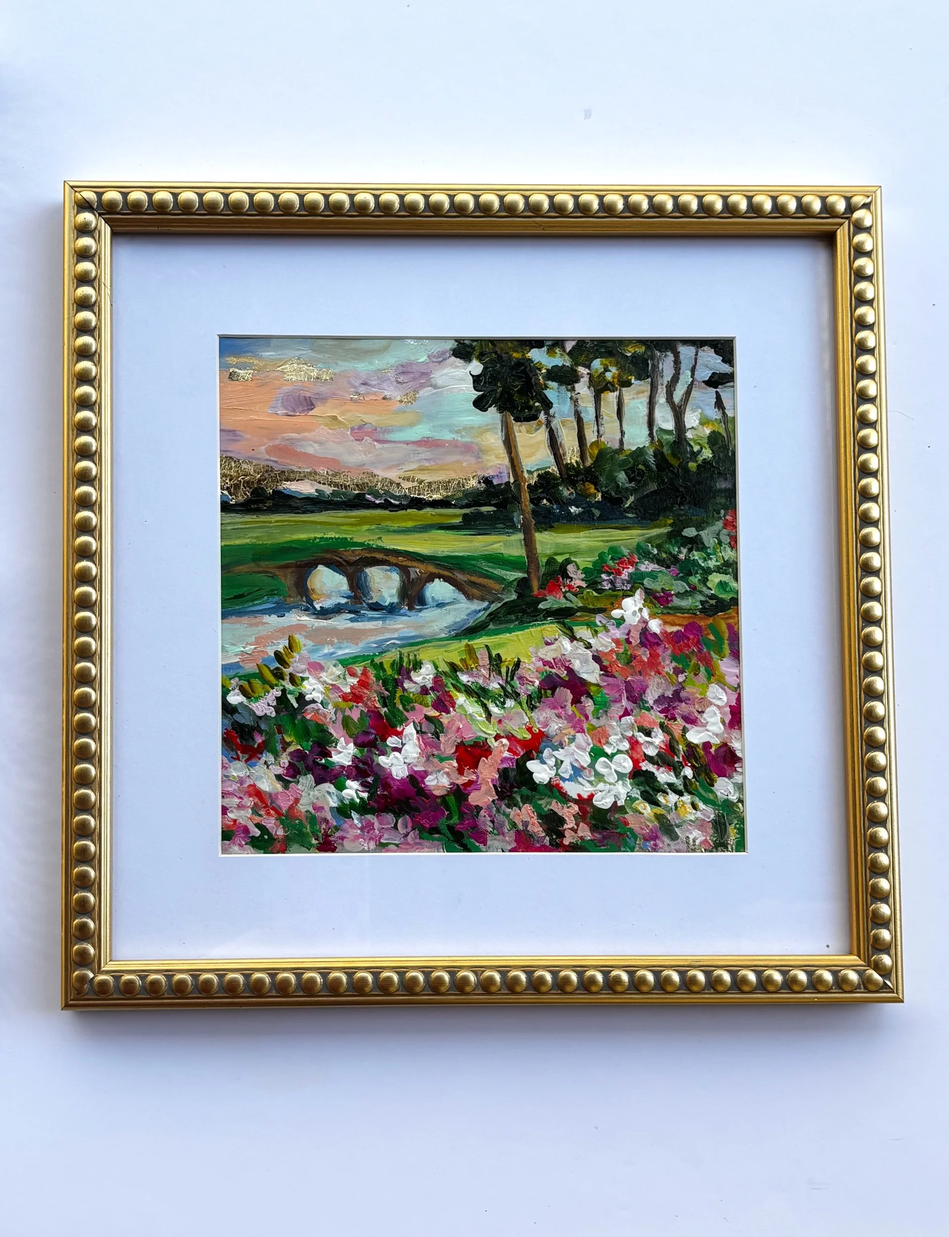 This original azalea garden painting is inspired by the vibrant, layered beauty of Augusta in full bloom—where every turn reveals bursts of pink, red, and white tucked beneath tall southern pines.