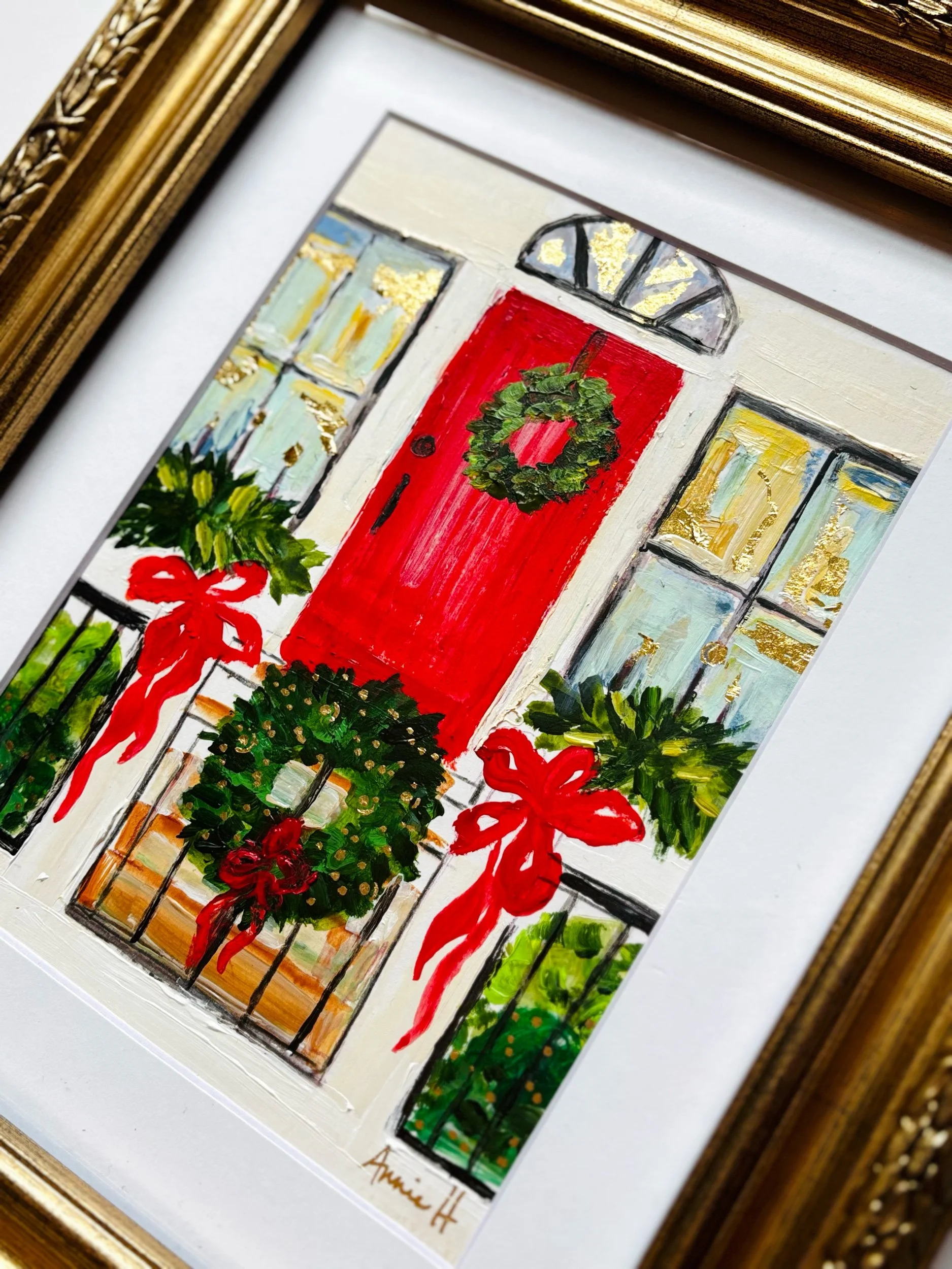 Home for the Holidays — Original Christmas Door Collection. Each piece features a 6x8 original on paper framed in an 8x10 gold frame.