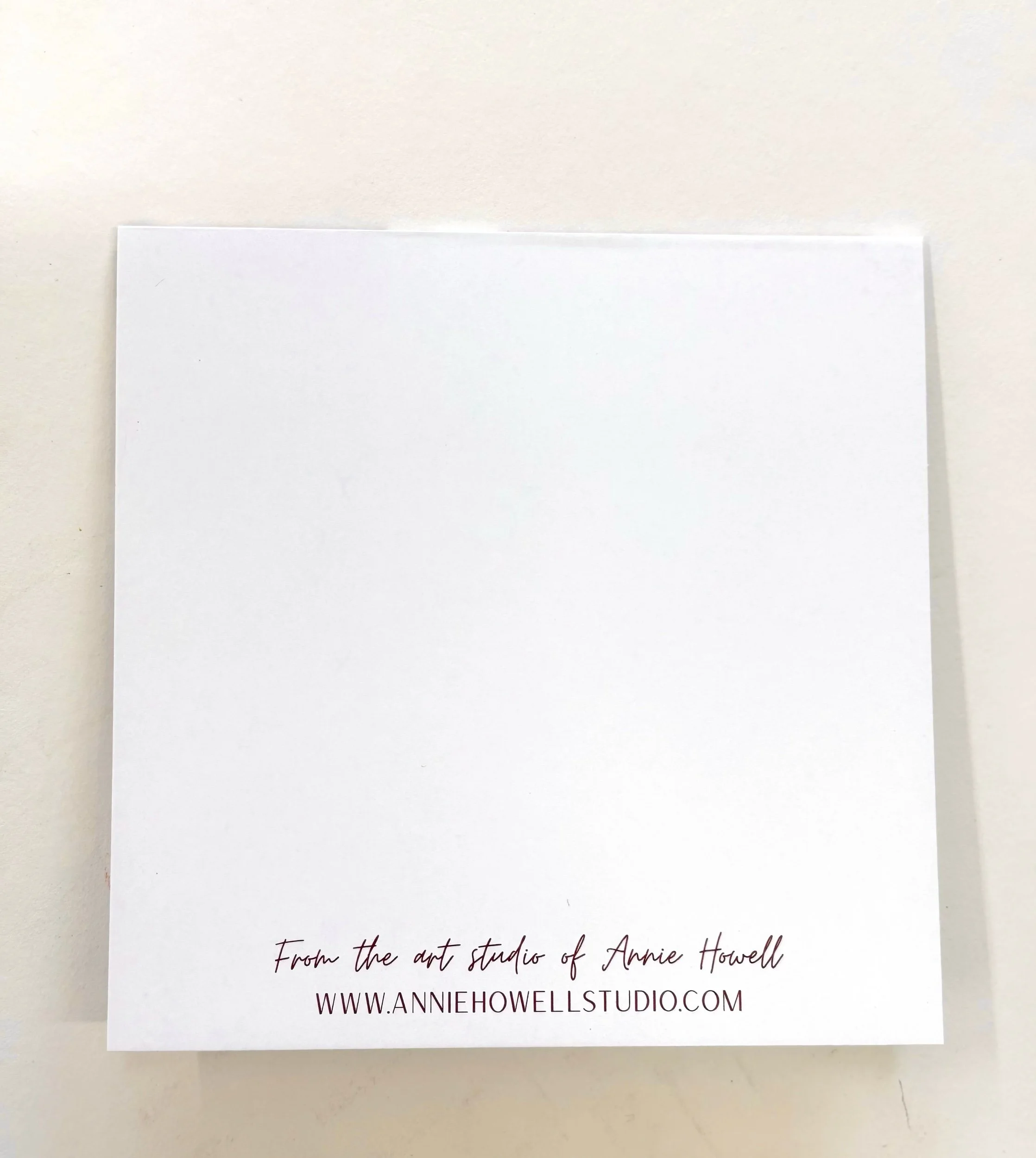 Printed on luxe, heavyweight cardstock, each notecard showcases the painterly detail, expressive brushstrokes, and signature gold accents that collectors love from Annie Howell Studio. The backs feature a clean, modern layout with Annie’s handwritten logo and website — a polished touch that makes these cards feel gift-ready straight from the box.